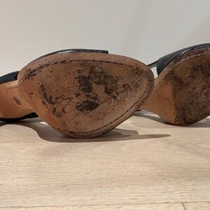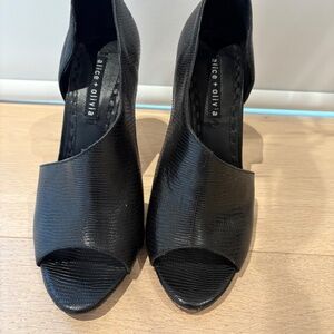 Alice + Olivia black leather d’Orsay peep toe heels, 8.5