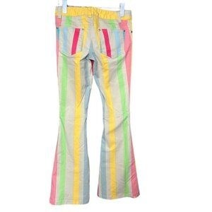 Multi-colored jean pants with bell bottom and a bit stretch.