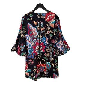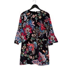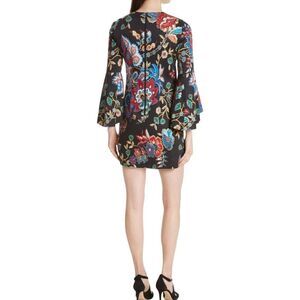 Alice + Olivia "Thym" Black Multicolour Bright Floral Trumpet Sleeve Tunic Dress