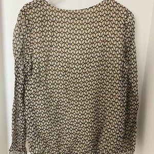 small geometric pattern print gathered waist long sleeve modern luxurious round neck top