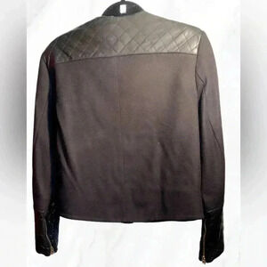 Alice + Olivia Wool Cashmere & Quilted Italian Leather Black gold hardware Jacket Coat