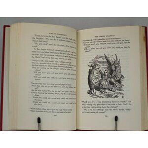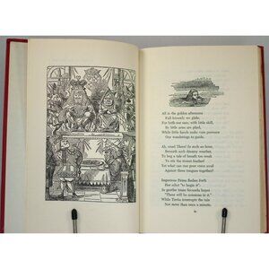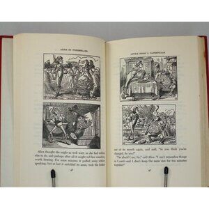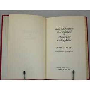 This is "Alice's Adventures in Wonderland and Through The Looking Glass," by Lewis Carroll, published by Nelson Doubleday. It has a red hard cover with black lettering on the spine. It has many charming illustrations by John Tenniel in black and white and is undated.