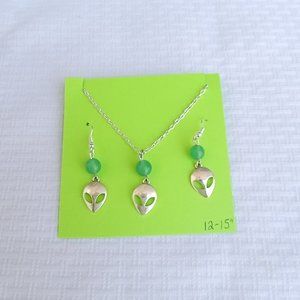 Alien Heads Aventurine bead Necklace & Earrings Jewelry set