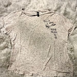 This is a cute t-shirt for the summer. It has been worn many times but it is still in great condition. Cute tucked into shorts or jeans.
