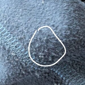 Pilling present on gusset. Small pinhole on right inner gusset, circled.