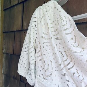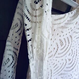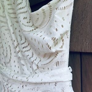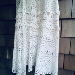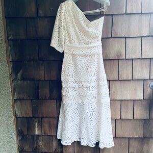 Alionas London Asymmetrical Lace Ivory Midi Dress with Belt on Waist Size L
