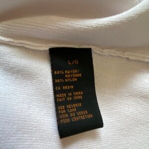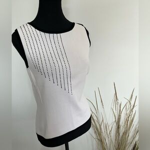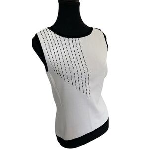 This elegant white sleeveless top features a stylish black beaded design, perfect for any occasion. Its sleek and modern look adds a touch of sophistication to your wardrobe. Size large like new