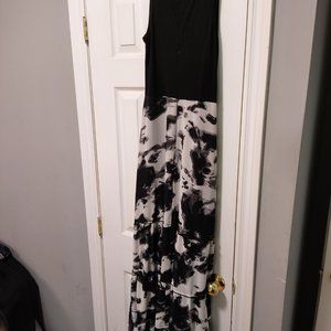 Alison Sheri full length XS sleeveless dress. Fabric1 95% viscose 5% spandex. Fabric2 100% polyester, and lining 100% polyester