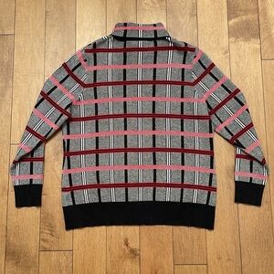 Alison Sheri plaid checkered cardigan jacket zip up L red white black collar