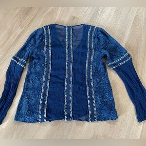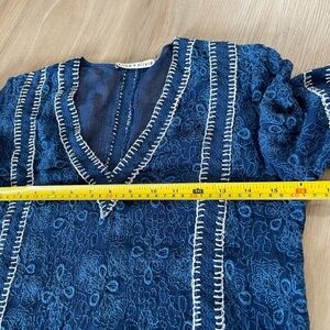 Alive & Olivia Blue Boho Summer Top with White Stitching. Size XS