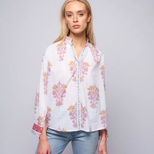 Alix of Bohemia boho Kiki Pastis button down embroidered shirt blouse - Small