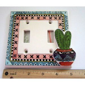 All Fired Up Handpainted Ceramic Double Electrical Outlet Switch Plate - Cactus