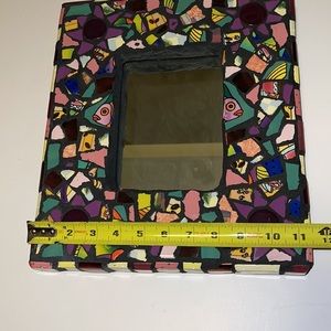 New with price sticker All Fired Up unique mosaic mirror made from broken ceramic switch plates.