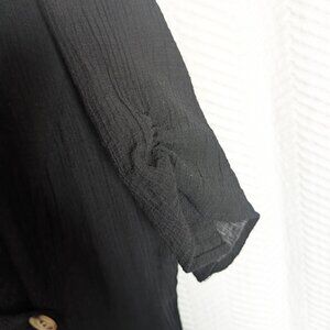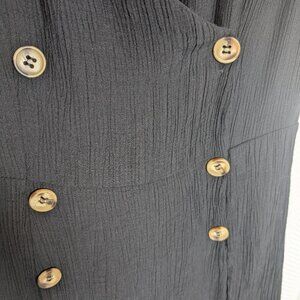 All In Favor Black Double Breasted Button Midi Dress Front Slits Crepe Medium