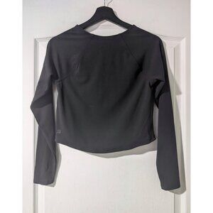 Everyday Soft cropped long-sleeve top in a solid hue. Designed with a no-collar neckline and flat seams. Made from a nylon and spandex blend with moisture-wicking and quick-drying properties for a cool and fresh feel. The fitted silhouette and cropped length with a curved hem complete the flattering look.