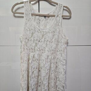 Made from soft stretch lace, this tunic offers a comfortable and flexible fit, hugging your curves without feeling restrictive. The cream colour provides a classic and versatile base, perfect for pairing with a variety of accessories and layers. The sleeveless design makes it ideal for warm weather or for layering under jackets and cardigans during cooler seasons.