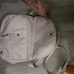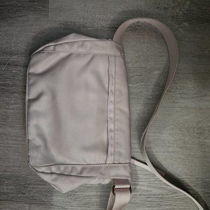 5L purse, crossbows strap, stripper closer, 3 external pouches. Internal zipper pocket and mesh pocket. A few small stains, not noticeable. Well cared for no rips/tears, all zippers work.