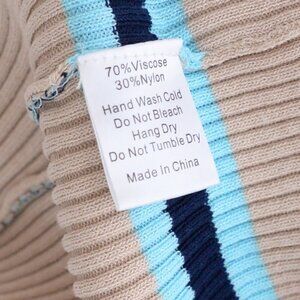 All Row Beige with Navy & Pink Stripe Bodycon Midi Short Sleeve Dress Medium