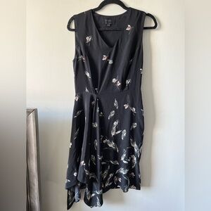 All Saints 100% SILK Black Floral Mini Vista Canna Dress - Size 2