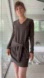 Has sleeves that tie around hips, v neckline.