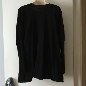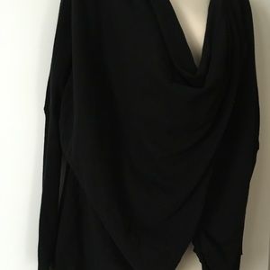 Elegant black drape sweater. Long sleeves. Soft fabric. Perfect for layering.
