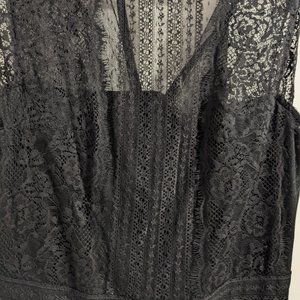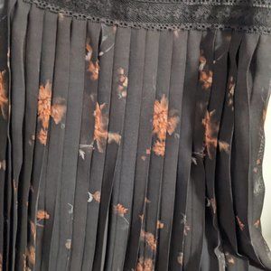 All Saints black floral silk millen dress. Has lace detailing on the top with a zipper and pleated silk skirt, worn once in excellent brand new condition.