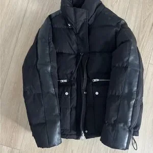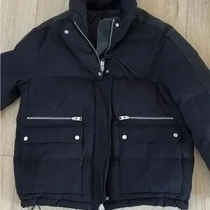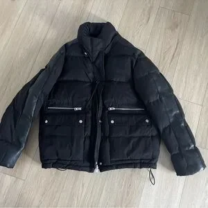Cool All Saints puffer jacket. Like new! Designed for an everyday cool vibe. Leather stripes down the sleeves.