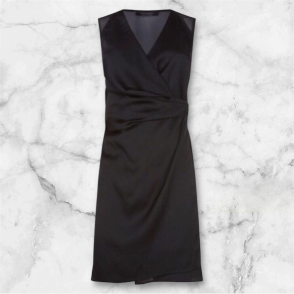 ✅All Saints Black Ruched Sheath Wrap Dress
