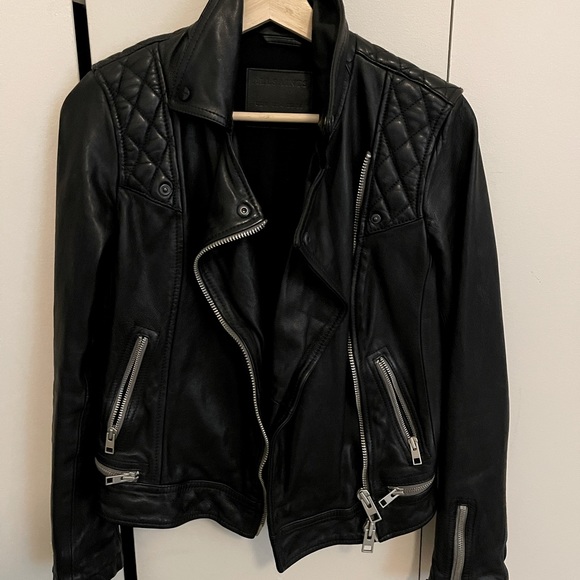 All Saints Conroy Leather Jacket Size 4 XS Ink