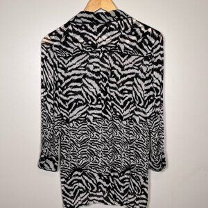 All Saints Ester Remix Zebra Animal Print Sheer Black White Womens Shirt