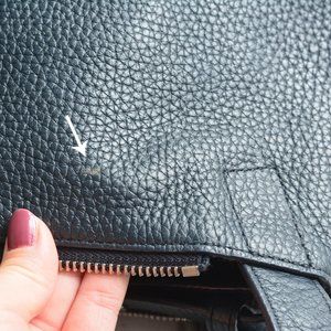 Great used condition, some small signs of wear on the leather (refer to photos). This is the small size - measures 36cm, width: 33cm, depth: 14cm. Navy colour.