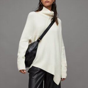 All Saints Lock Roll Neck Relaxed Fit Jumper Wool Yak Blend Soft Chalk White