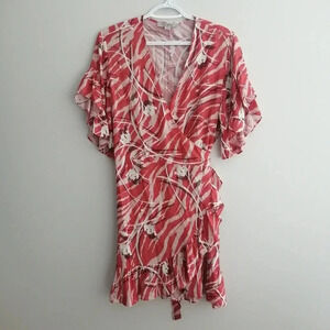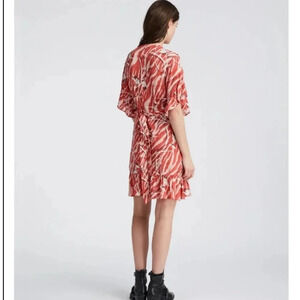 All Saints Marlow Kazuna Wrap Dress Japanese Print Ruffle Trim Tie Belt