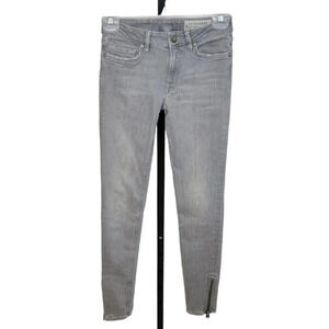 All Saints Mast Zip Bottom Skinny Jeans Gray Wash