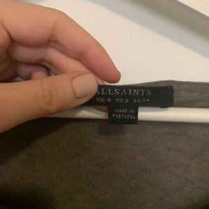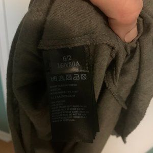 Elegant olive midi dress. Features a draped design. Three-quarter sleeves. Perfect for versatile styling.