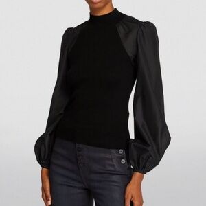 Let AllSaints make a strong case for statement sleeves with the Cleo top. Crafted from a rib-knit fabric and detailed with delicate cotton-silk sleeves, the piece effortlessly treads the line between everyday ease and playful femininity.