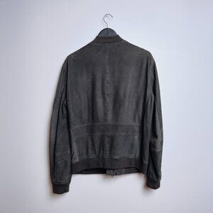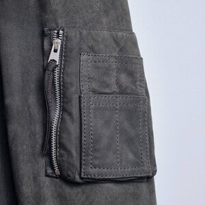 All Saints Soft Lambskin Leather Bomber Jacket - Charcoal / Large