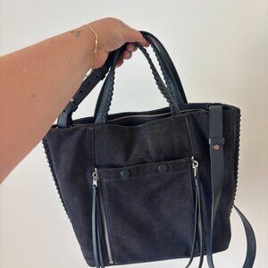 Navy blue All Saints bag. Its worn but still in pretty good condition, zippers and clasps all work perfectly, nothing is torn or broken just wear on the outside.