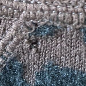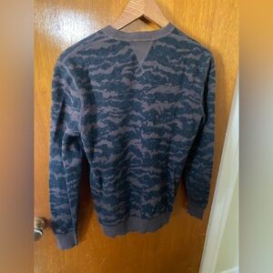 In awesome shape other than one small hole as pictured in last two pics which could use mending. Lovely quality. Men’s small fits like women’s medium.
