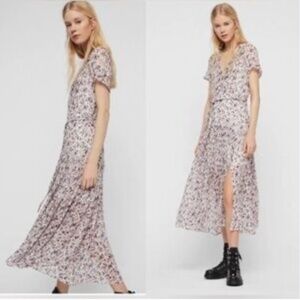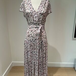Based on vintage dresses. The Alix Dress features our new Freefall print, ditsy florals on a white backdrop. Alter the silhouette with the functional buttons on the skirt.