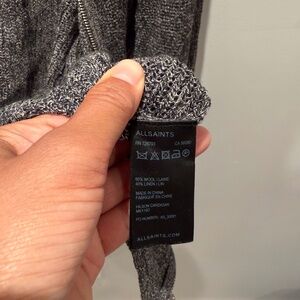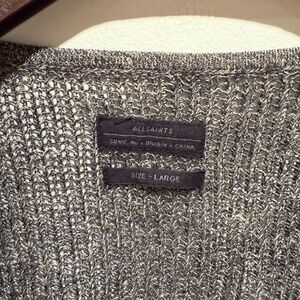 All Saints men's gray open knit cardigan with zipper, size L. Like new condition, never worn. Retailed $150.