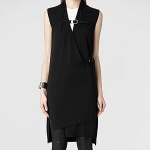 A new silhouette made for easy layering. With 2 silver buckles, versatile piece can be worn as vest or dress. Viscose/cotton blend. Excellent condition, hardly worn.