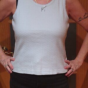 All points twinset baby blue with tiny floral details and lace border.. little bow on tank top 100% cotton 7 button