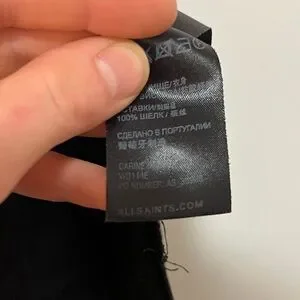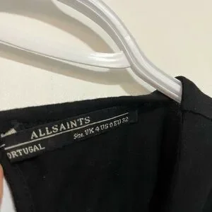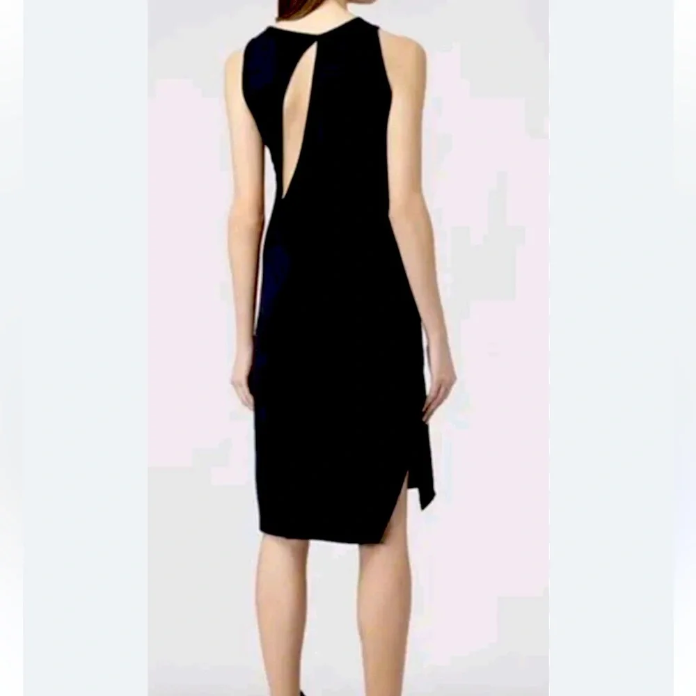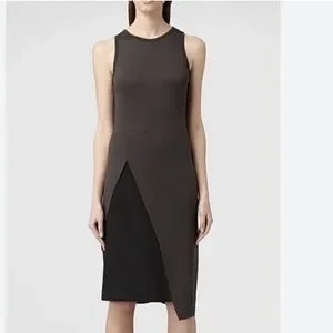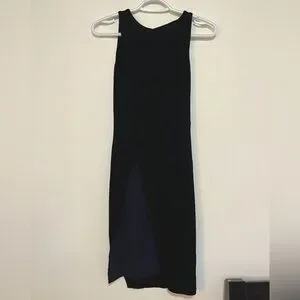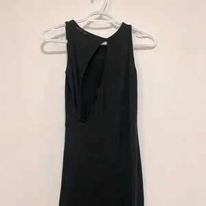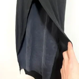 Black with grey silk underskirt / hanging panel underneath and cut out detail to the back.