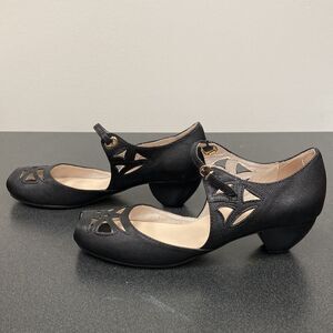 All Black the Brand Anthropologie Black Leather Cut Out Peep Toe Mary Jane Heels