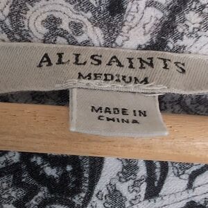 AllSaints Black and White Lace Effect Paisley Button-Up Shift Dress Size M