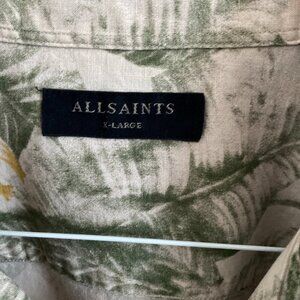 AllSaints Casual Button-Down Shirt Short Sleeves Linen Blend Size X-large Men
