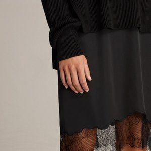 - A dress crafted from a soft and lightweight fabric with lace trimming around the hem