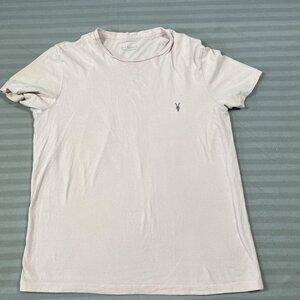 AllSaints Shirt Mens Small Light Pink Ramskull Logo Crewneck T-Shirt Tee