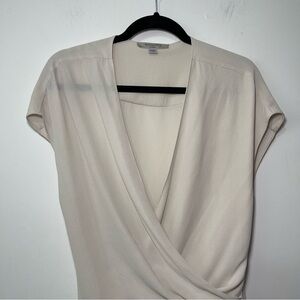AllSaints Women’s Mia Wrap Blouse Beige Short Sleeve Tie Back minimalist Size L